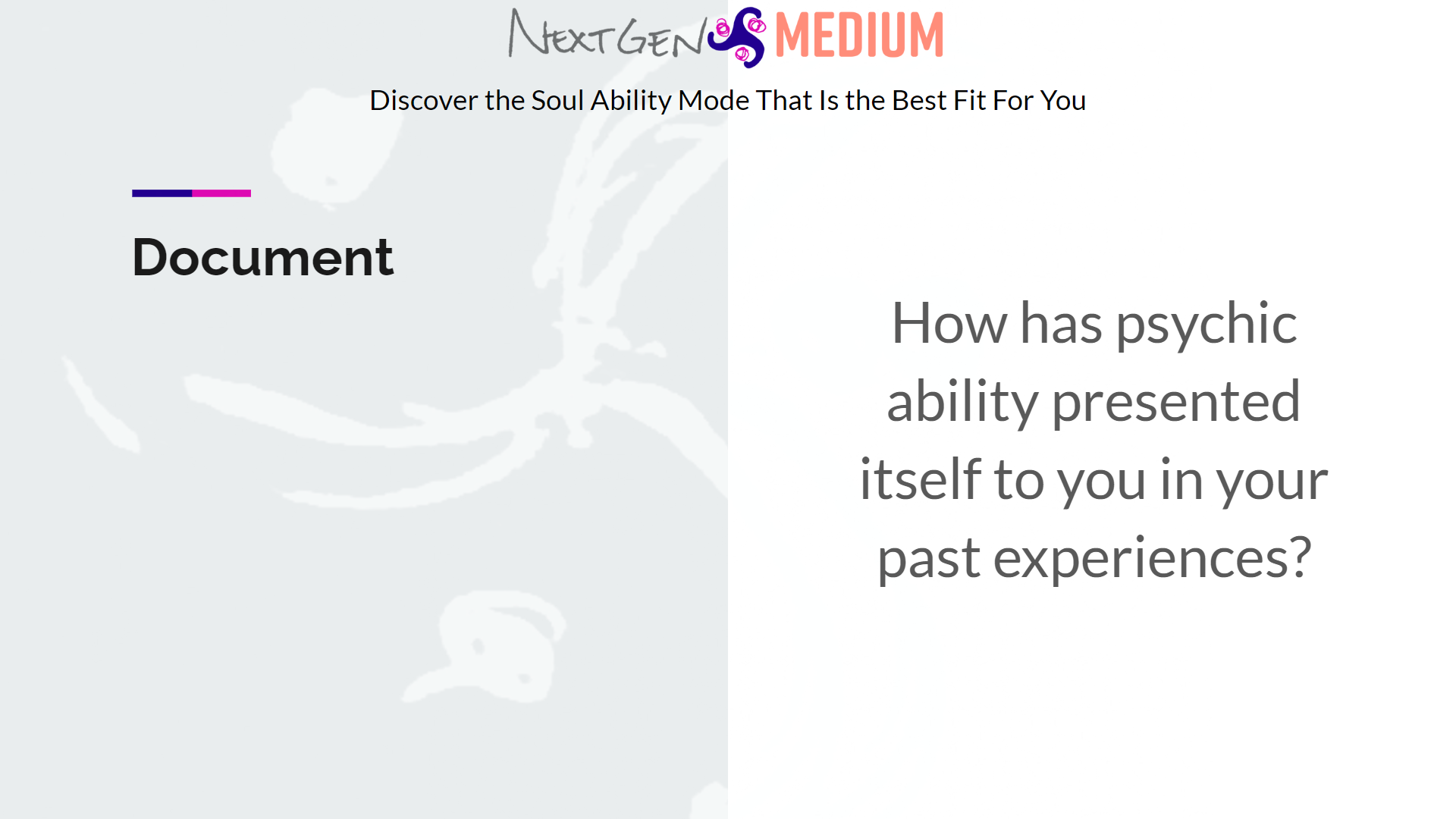 Progress NextGEN Medium Soul Abilities Discovery Workshop Complete & Continue Next Lesson Learn More Let's Start Your Exploration! 6 Lessons Soul Abilities Discovery Workshop Introduction NextGEN Medium Terms and Conditions for this Workshop About Your Instructor Workshop Objectives and What to Expect As You Begin Your Journey Life Changes Utilizing The Soul Mode Tools Discover the Soul Mode Ability (Psychic, Medium, Intuitive, and Healing) That Is The Best Fit For You 20 Lessons Course Overview πAssessment: Start Witnessing Your Soul Abilities At Work π Journaling Time: Explore Your Soul Ability Mode Result Moving Forward After You've Been Matched Soul Ability Modes Overview Intuition Overview Intuition Details π Journaling Time: Reflect on Past Intuition Experiences Psychic Ability Overview Psychic Ability Details π Journaling Time: Reflect on Past Psychic Experiences Mediumship Ability Overview Mediumship Details π Journaling Time: Reflect on Past Mediumship Experiences Healing Overview Healing Details π Journaling Time: Reflect on Past Healing Experiences π Journaling Time: Pick A Mode That Interests You βMore Resources On Soul Modes π¬ Student Feedback Essentials to Work Your Spiritual Abilities for Undeniable Evidence 21 Lessons Course Overview Essential External Tools Overview The Essential Tool of Meditation How to Meditate Meditative Activities ποΈβπ¨οΈ EXERCISE: Meditation To Experience Your Abilities & Senses π Journaling Time: Reflect on Meditation Experience The Essential Tool of Journaling The Essential Tool of People Essential Internal Tools Overview The Essential Tools of the Soul Senses (A.K.A. The Clairs) π Journaling Time: Reflect On Your Clair Experiences π ASSESSMENT: Which Clair Is Your Super Soul Sense? Moving Forward with the Soul Senses for Your Development The Essential Tool of Awareness The Essential Tool of Imagination The Essential Tool of Intuition The Essential Tool of Intention The Essential Tool of Curiosity βMore Resources On The Subjects Brought Up In This Section π¬ Student Feedback Identify Spiritual Ability Connection Issues for Clearer Evidence and Messaging 18 Lessons Course Overview π Journaling Time: Reflect on Current Barriers So Far The Ego Egoic Barriers Identifying Your Egoic Barriers Coping With Shame π Journaling Time: Reflect On Your Egoic Barriers Beliefs π Journaling Time: Reflect on Presence of Beliefs What Is Mindset? A Visual of Mindset π Journaling Time: Reflect On Your Mindset Identifying Your Vibe π ASSESSMENT: How Aligned Are You With Your Spiritual Higher Self? Vibe Visual How to Work With Your Wack βMore Resources On The Subjects Brought Up In This Section π¬ Student Feedback Shift Your Soul Abilities Development Into A New Reality 24 Lessons Course Overview Technique for Connecting Connecting: Settle Down Connecting: Settling In Connecting: Opening Up Connecting: Observe and Explore Connecting: Wrap Up & Document External Energetic Tools Overview Energetic Tool of Music Energetic Tool of Scent Energetic Tool of A Dedicated Space Energetic Tool of Crystals and Stones Messaging Tool of Divination π ASSESSSMENT: Which Divination Practice Would Be the Most Effective For Your Spiritual Ability Growth? Messaging Tool of People Tune-In Improvement Practice Overview Tune-in Improvement Practice: Do Things You Want To Do Tune-in Improvement Practice: Use Your Imagination Tune-in Improvement Practice: Practice Free-flow Activities Tune-in Improvement Practice: Meditation Exercise Set Expectations For Yourself And Your Clients Legal And Ethical Things To Know Before Doing Readings βMore Resources On The Subjects Brought Up In This Section π¬ Student Feedback Moving Beyond This Workshop With Your New Knowledge 6 Lessons Final Words As You Continue Your Journey βMore Resources Based on Information from This Workshop Add A Review of This Course π¬ Workshop Feedback Connect with NextGEN Medium Student Discounts NextGEN Medium Soul Abilities Discovery Workshop Complete & Continue Next Lesson Learn More Discover the Soul Mode Ability (Psychic, Medium, Intuitive, and Healing) That Is The Best Fit For You π Journaling Time: Reflect on Past Psychic Experiences